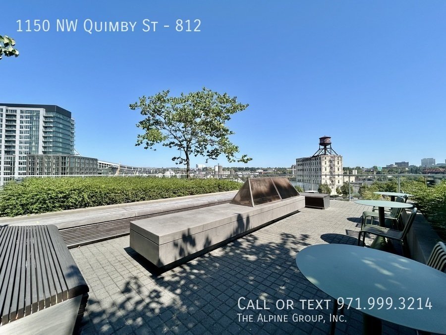 Residents of The Vista North Pearl enjoy concierge service, a dog wash station, expansive bike storage, community and meeting rooms, and a private park with fire pits and bistro tables overlooking The Fields Off-Leash Park.