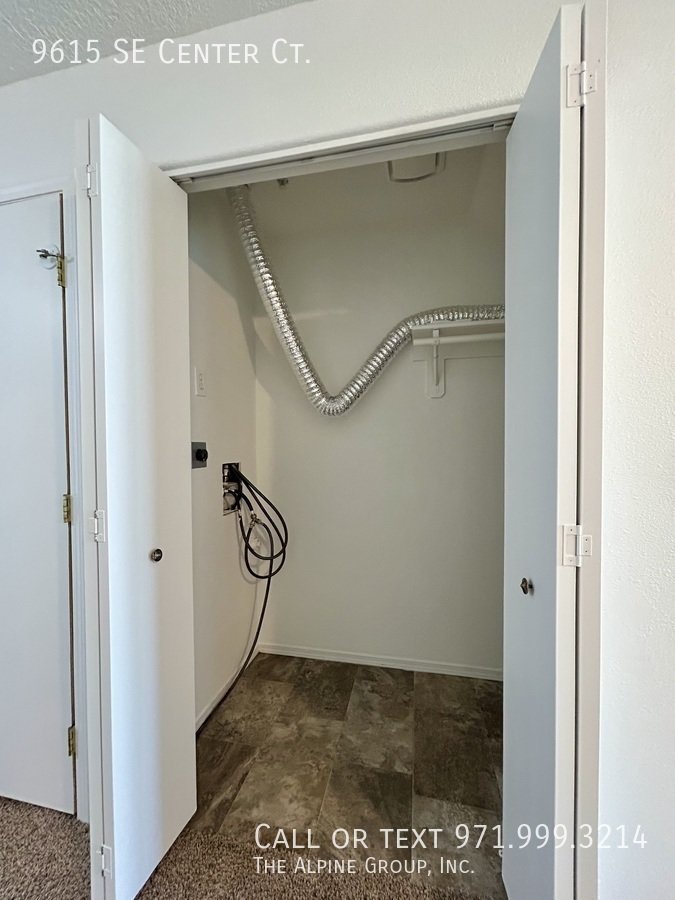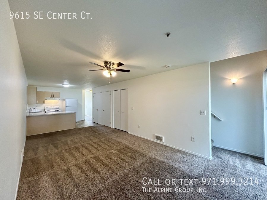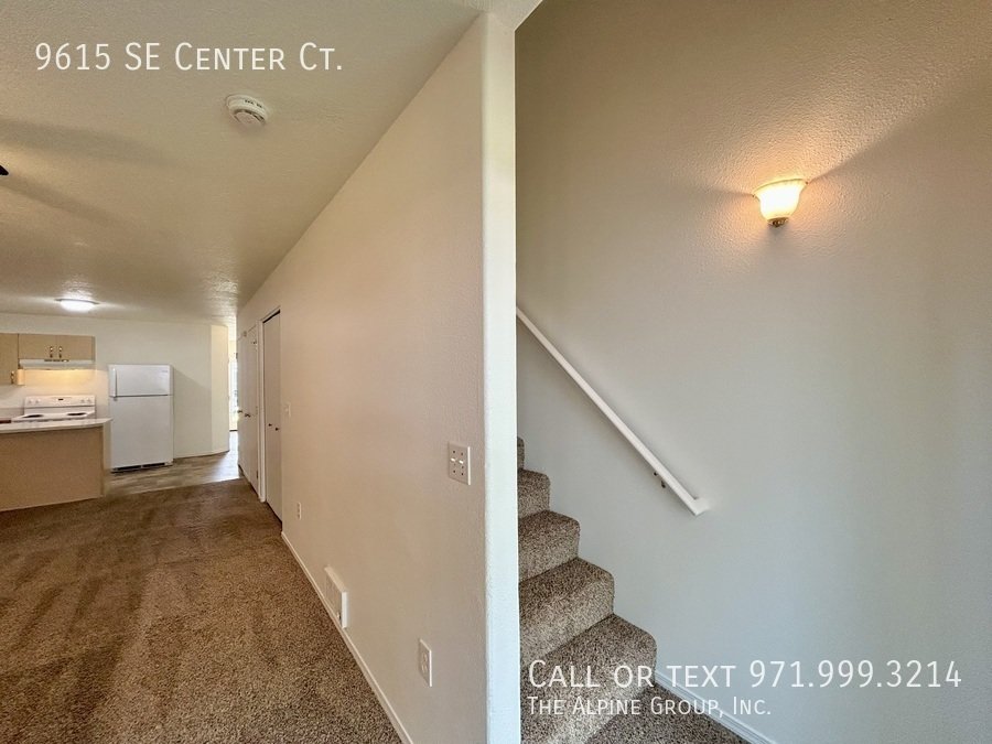 Step into this inviting 3-bedroom townhome in a peaceful SE Portland cul-de-sac. The bright, open layout welcomes you with a spacious living area and a well-appointed kitchen. Enjoy the comfort of plush carpeting and plenty of storage throughout. For added convenience, a stacked washer and dryer is provided. A half bath and easy access to the patio and backyard complete the lower level.